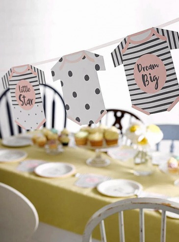 Χάρτινη γιρλάντα της σειράς Born to be loved με σημαιάκια σε σχήμα βρεφικά φορμάκια για κοριτσάκι.
